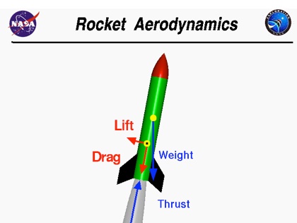 Thrust - the force that acts on rockets or airplanes to make them move forward. This force is created by the rocket or airplane engine, also known as the propulsion system.