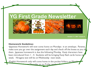 •Japanese Homework will now come home on Mondays in an envelope. Parents, make sure you go over the assignment each day and check off the boxes as you do them. Japanese homework is due the following Monday. Kanji characters have been introduced from 1 - 4. Students will be bringing Kanji flash cards home next week. Hiragana test will be on Wednesday next week.