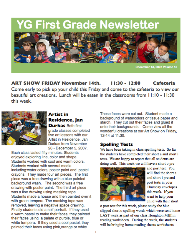 YG First Grade Newsletter