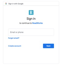 Readworks - Click on the red “sign in with Google” bar